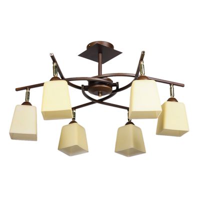 Люстра потолочная 5-и рожковая в стиле модерн. Сочетание цветов ржа и золота с бежевыми матовыми плафонами создаст ощущение завершенности композиции. Отличное польское качество и прочный толстый плафон российского производства. На что особенно стоит