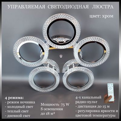 Люстра LI-8488-A/5 Хром-Пульт- радио 2,4G,70W LED 230V