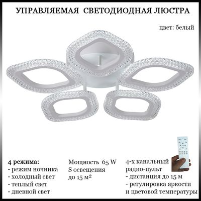 Люстра LI-8489 A/5 Белый-Пульт- радио 2,4G,65W LED 230V